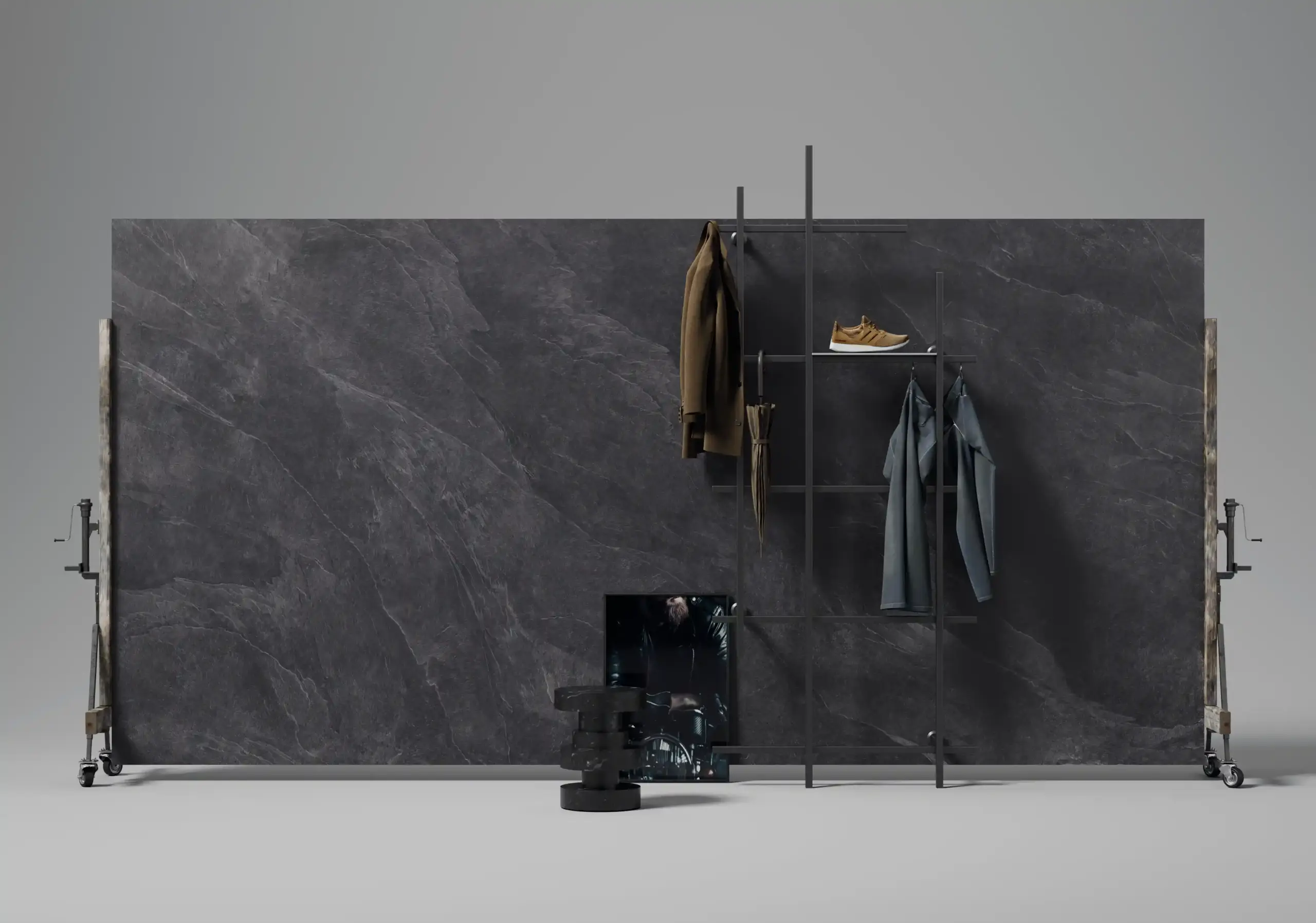 過去的藝術世界裡,在還沒有彩色顏料出現之前,只有黑與白的概念,我們在歐洲首先面對的是白色冰冷的石膏雕像,透過炭條、炭鉛筆將石膏雕像一筆一筆呈現在紙上,沒有色彩的世界裡,黑與白的特色就在於光影產生的構圖,光線的變化影響線條的粗細,凸顯出黑與白的不同,我們觀察光線最大的明亮區與最暗的陰影區其中的比例,從白色、灰色調、漸層色、到陰暗色,LEVEL透過現代科技設備製成高密度陶瓷大板,將同一片色調產生變化與豐富層次,達到歐美陶瓷工藝規範V3等級的陰影處理,進而達到純天然的石紋效果。