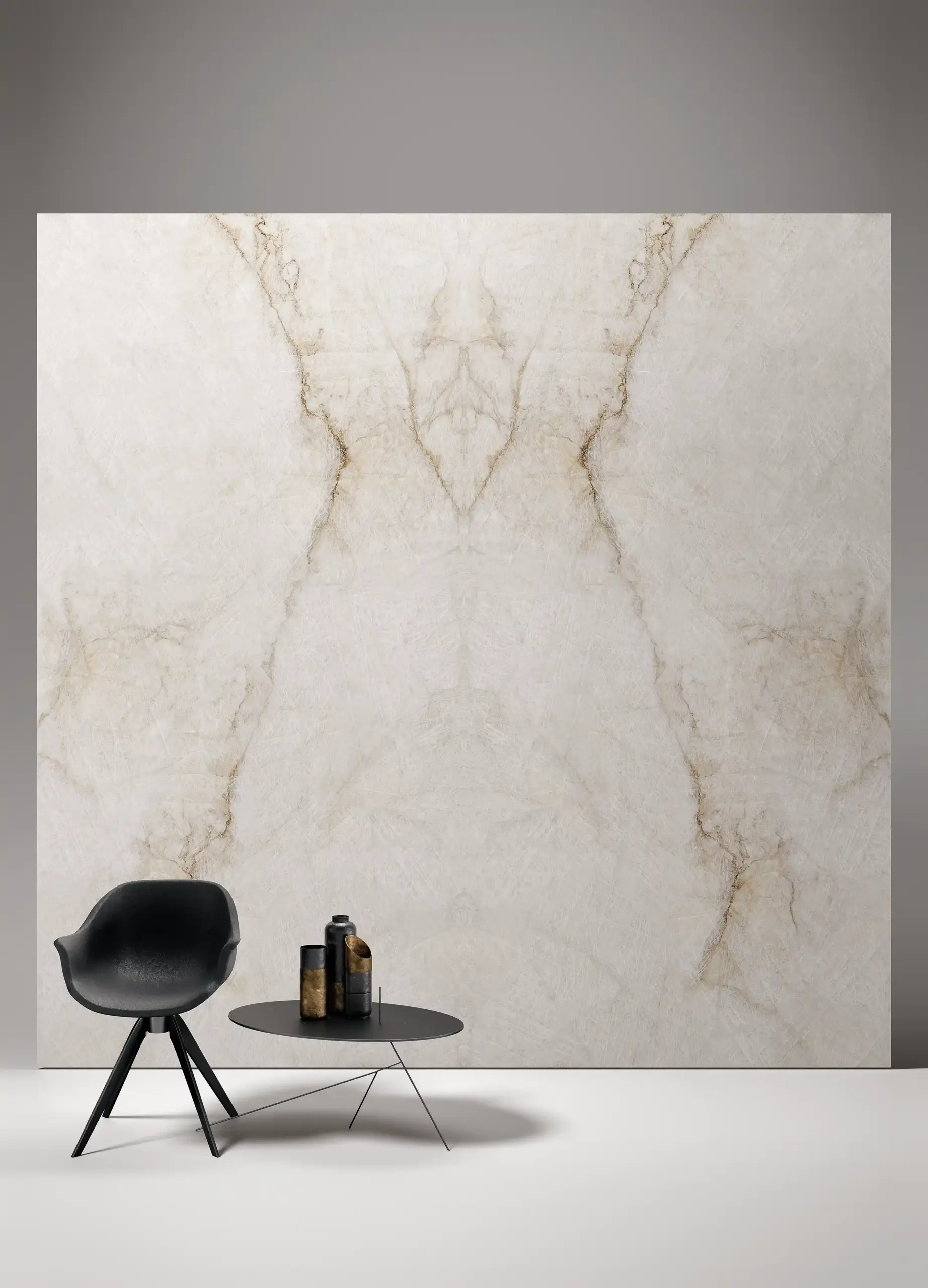霧面系列 當大眾追求自我品味與華麗的豪宅美學成為潮流的今日,依然有著習慣低調自然的族群,選用經由科技去蕪存菁後所留下乾淨、漂亮大理石紋理的石材,並選用成為裝潢首選,有著天然石材般的石韻搭配細緻霧感質地,少了拋光亮麗的表面,多了來自天然石材於於歲月中堆積出的流線感,與各式層次豐沛的霧面質地紋路,加上霧面因為沒有光澤,顏色也會顯得比較飽滿,紋路比較容易顯現出來,圖像紋理更加明顯,視覺感顏色的部分較溫和,適合輕奢風格的空間氛圍。 SIZE丨 尺寸 324cm x 162cm THICKNESS 丨 厚度 12mm Grain Matching 丨 對紋 是 Surface | 表面 霧面