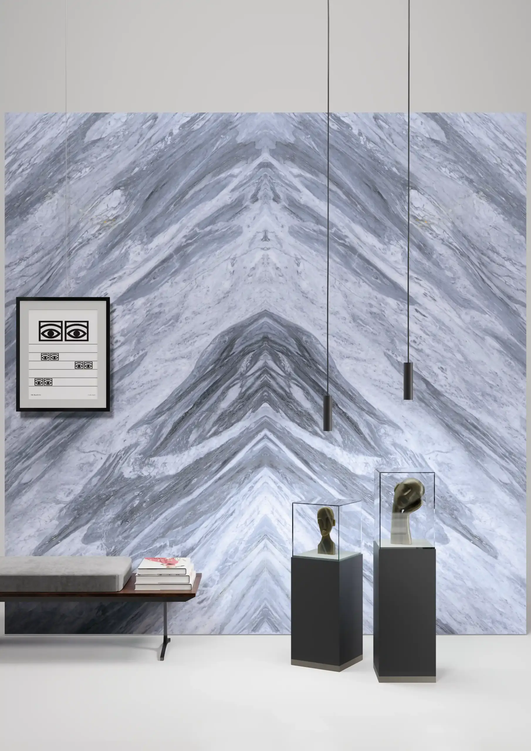 當大眾追求自我品味與華麗的豪宅美學成為潮流的今日,依然有著習慣低調自然的族群,選用經由科技去蕪存菁後所留下乾淨、漂亮大理石紋理的石材,並選用成為裝潢首選,有著天然石材般的石韻搭配細緻霧感質地,少了拋光亮麗的表面,多了來自天然石材於於歲月中堆積出的流線感,與各式層次豐沛的霧面質地紋路,加上霧面因為沒有光澤,顏色也會顯得比較飽滿,紋路比較容易顯現出來,圖像紋理更加明顯,視覺感顏色的部分較溫和,適合輕奢風格的空間氛圍。