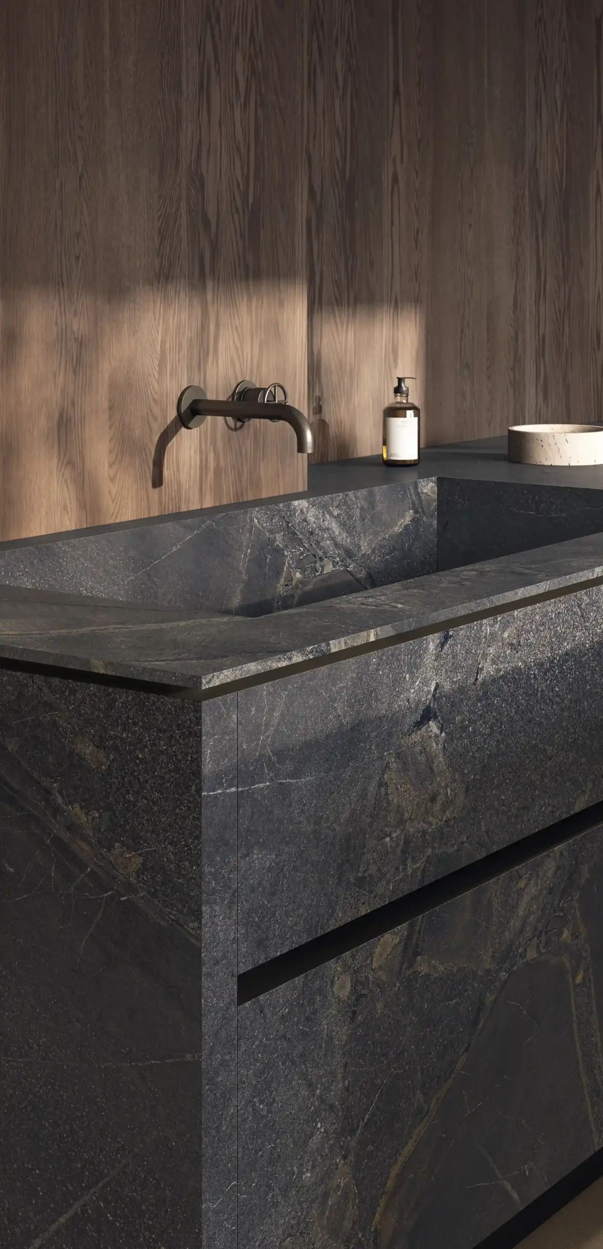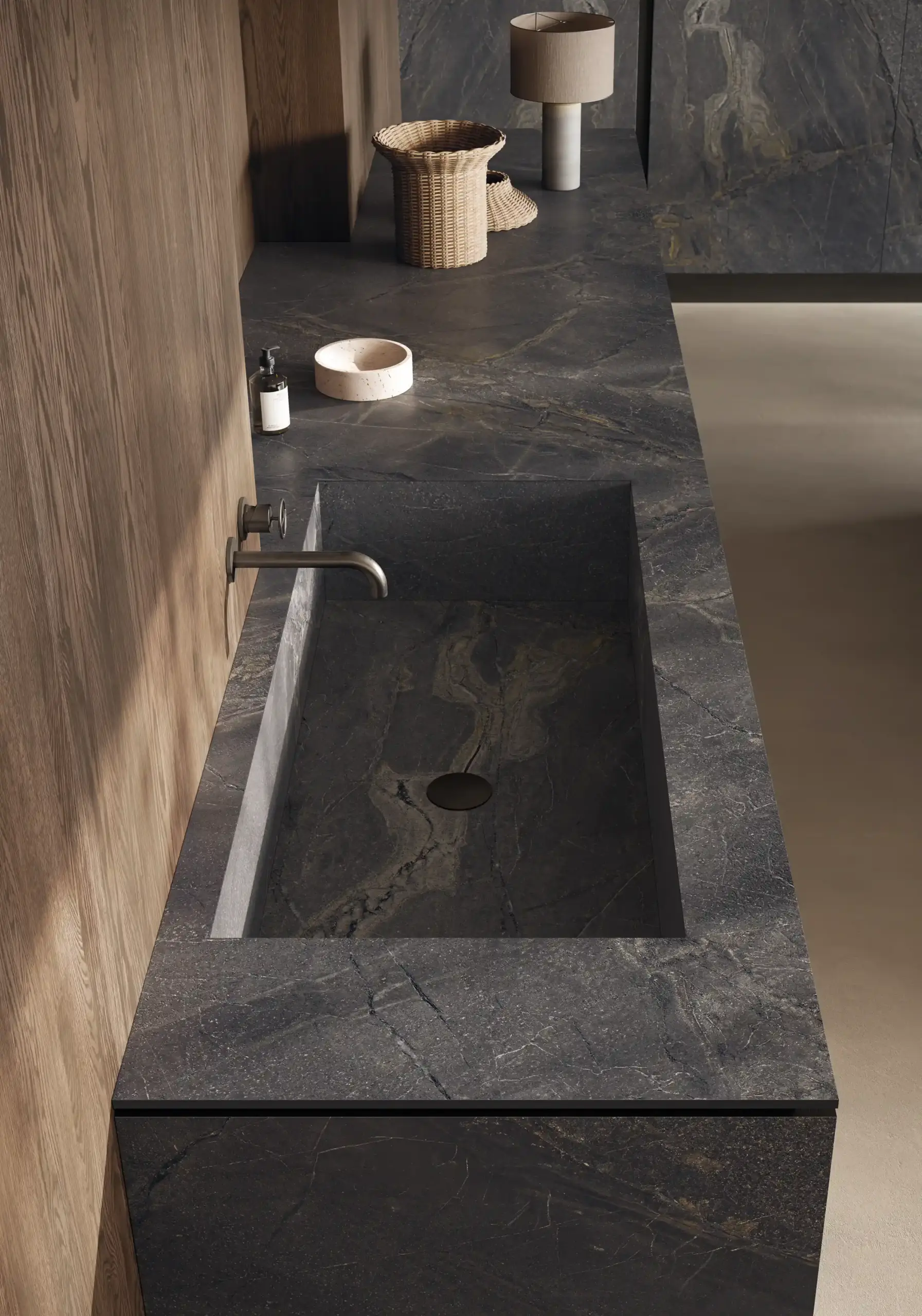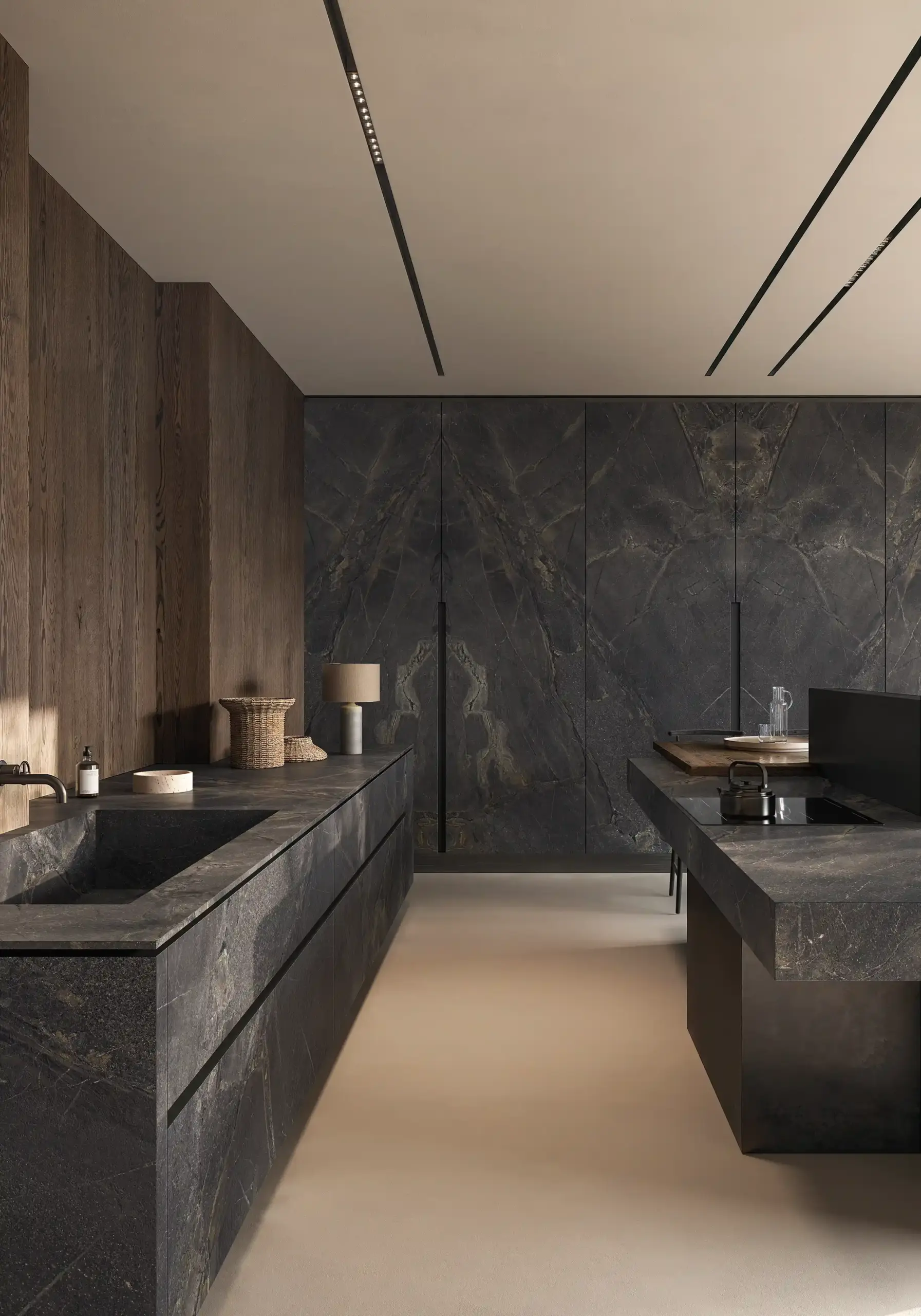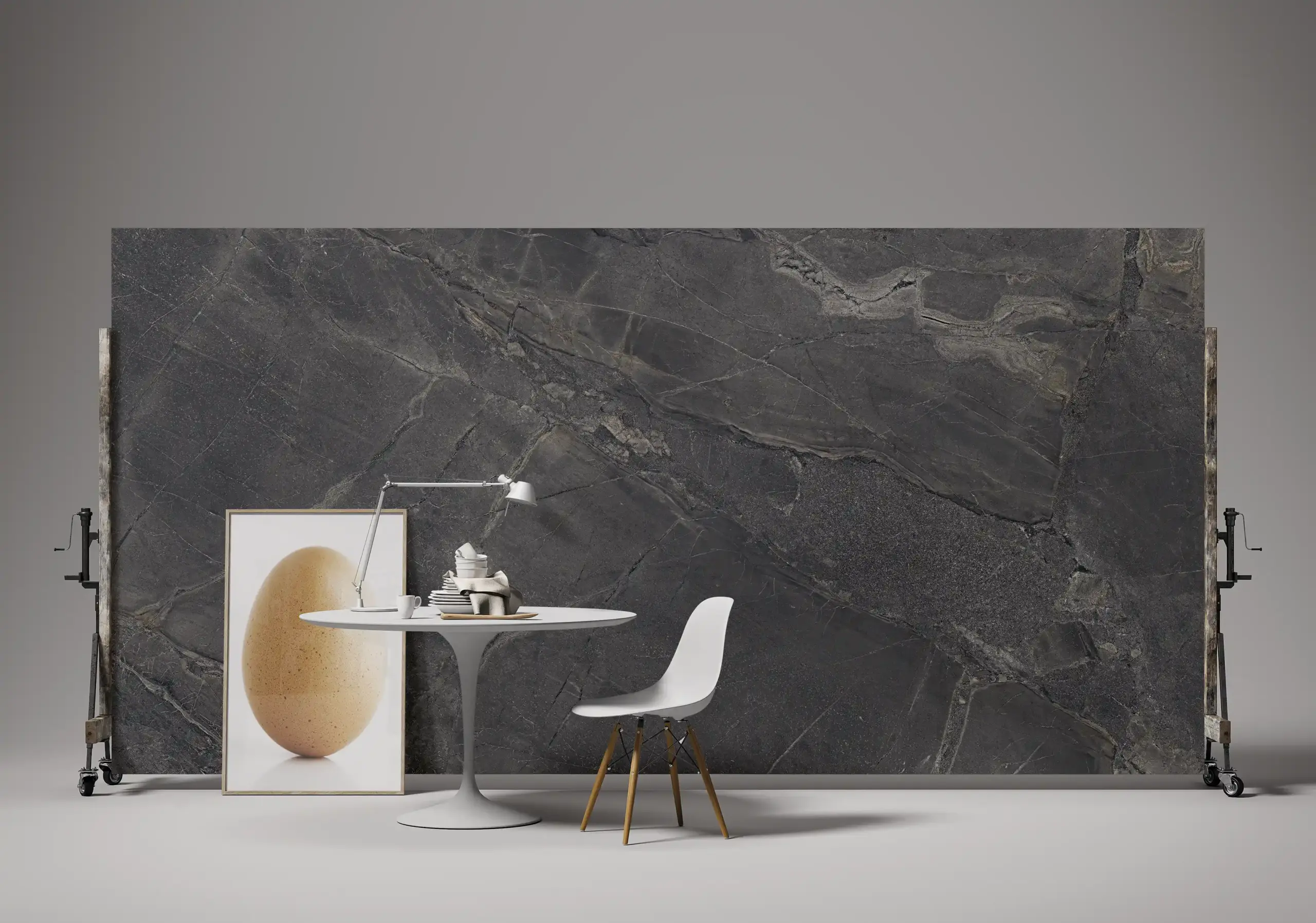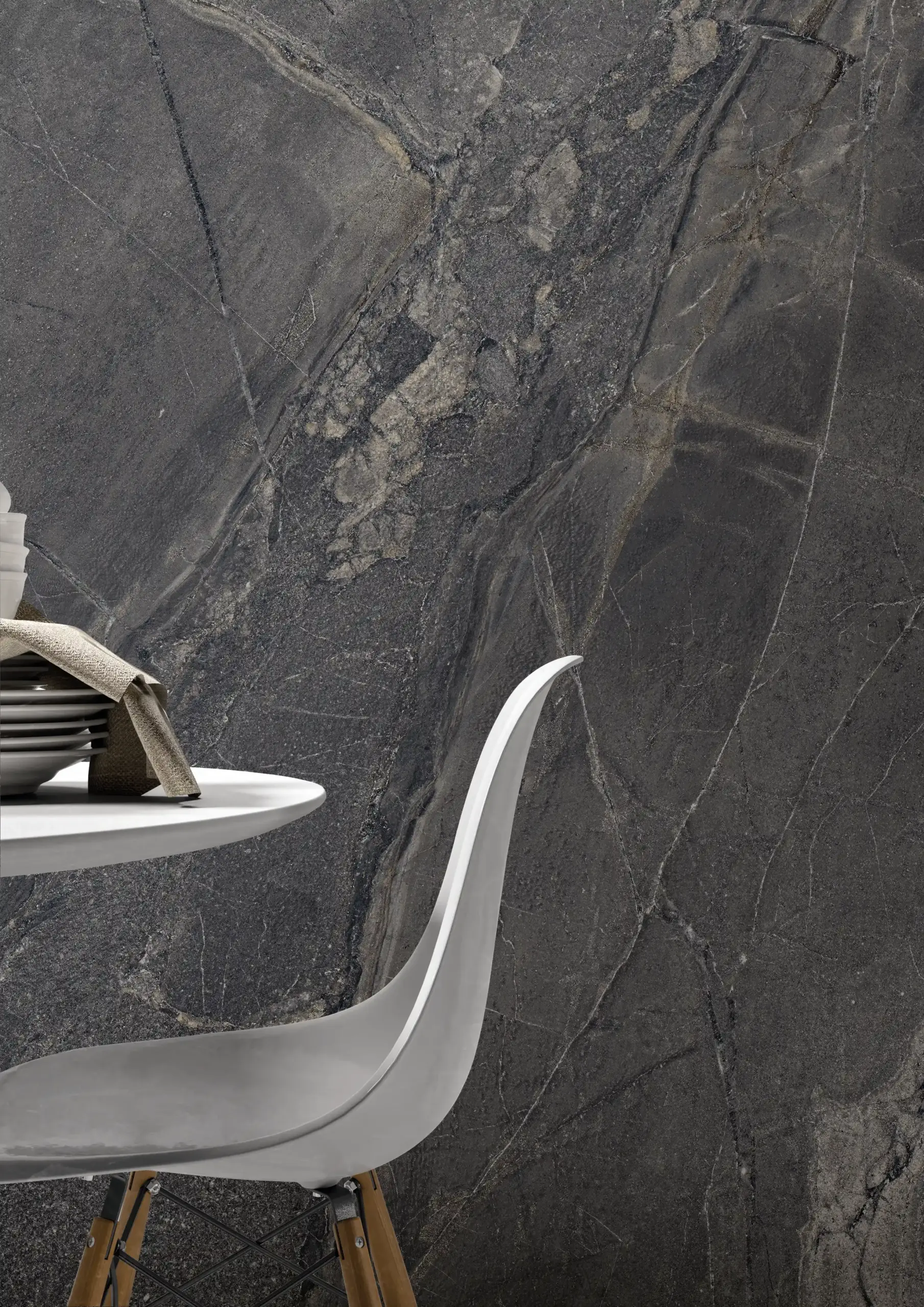 當大眾追求自我品味與華麗的豪宅美學成為潮流的今日,依然有著習慣低調自然的族群,選用經由科技去蕪存菁後所留下乾淨、漂亮大理石紋理的石材,並選用成為裝潢首選,有著天然石材般的石韻搭配細緻霧感質地,少了拋光亮麗的表面,多了來自天然石材於於歲月中堆積出的流線感,與各式層次豐沛的霧面質地紋路,加上霧面因為沒有光澤,顏色也會顯得比較飽滿,紋路比較容易顯現出來,圖像紋理更加明顯,視覺感顏色的部分較溫和,適合輕奢風格的空間氛圍。