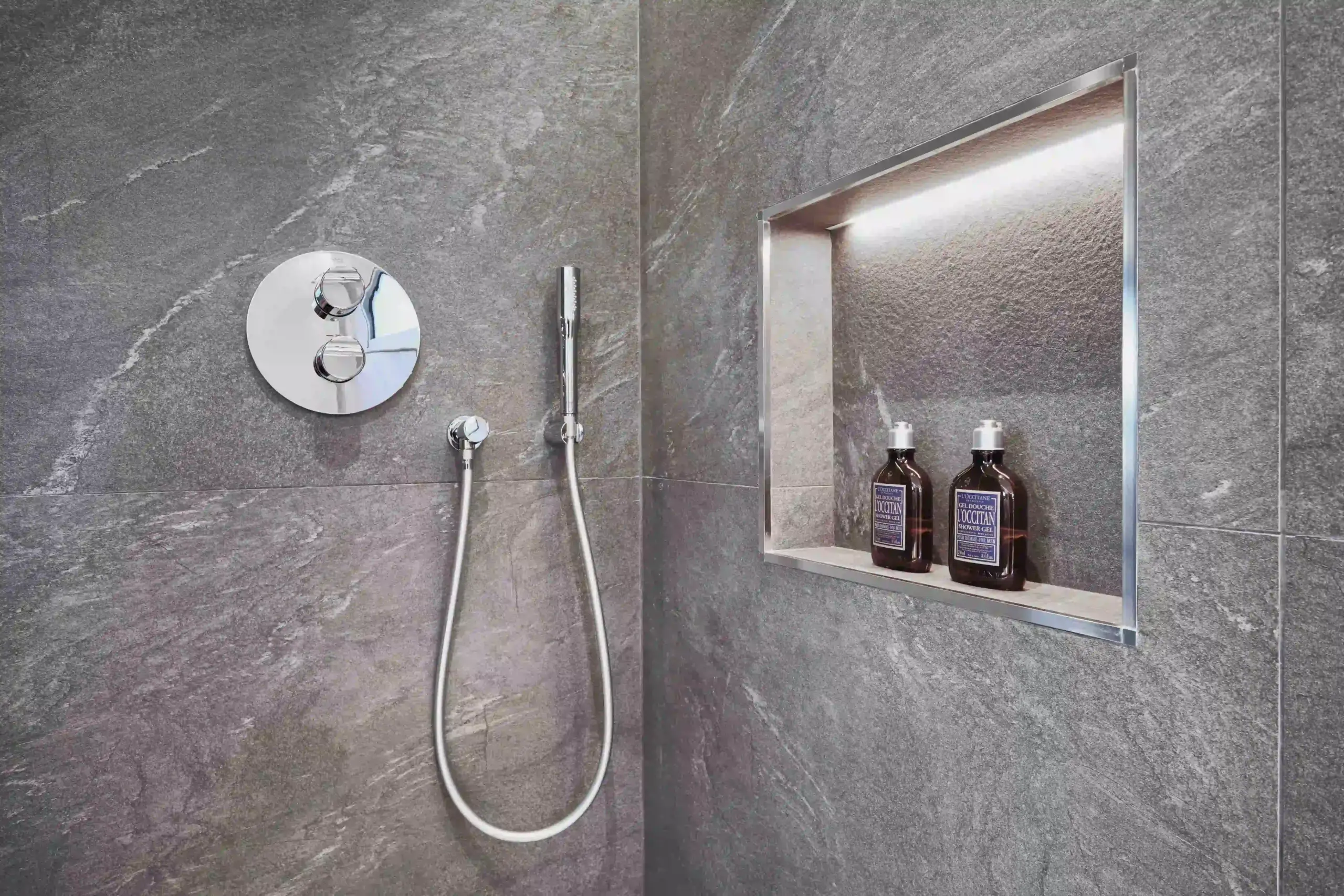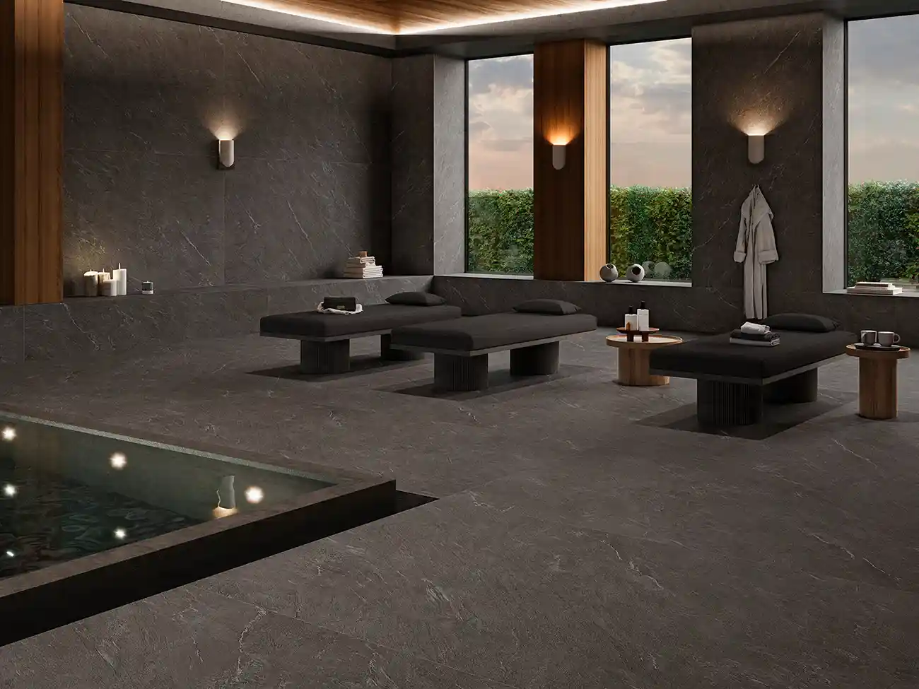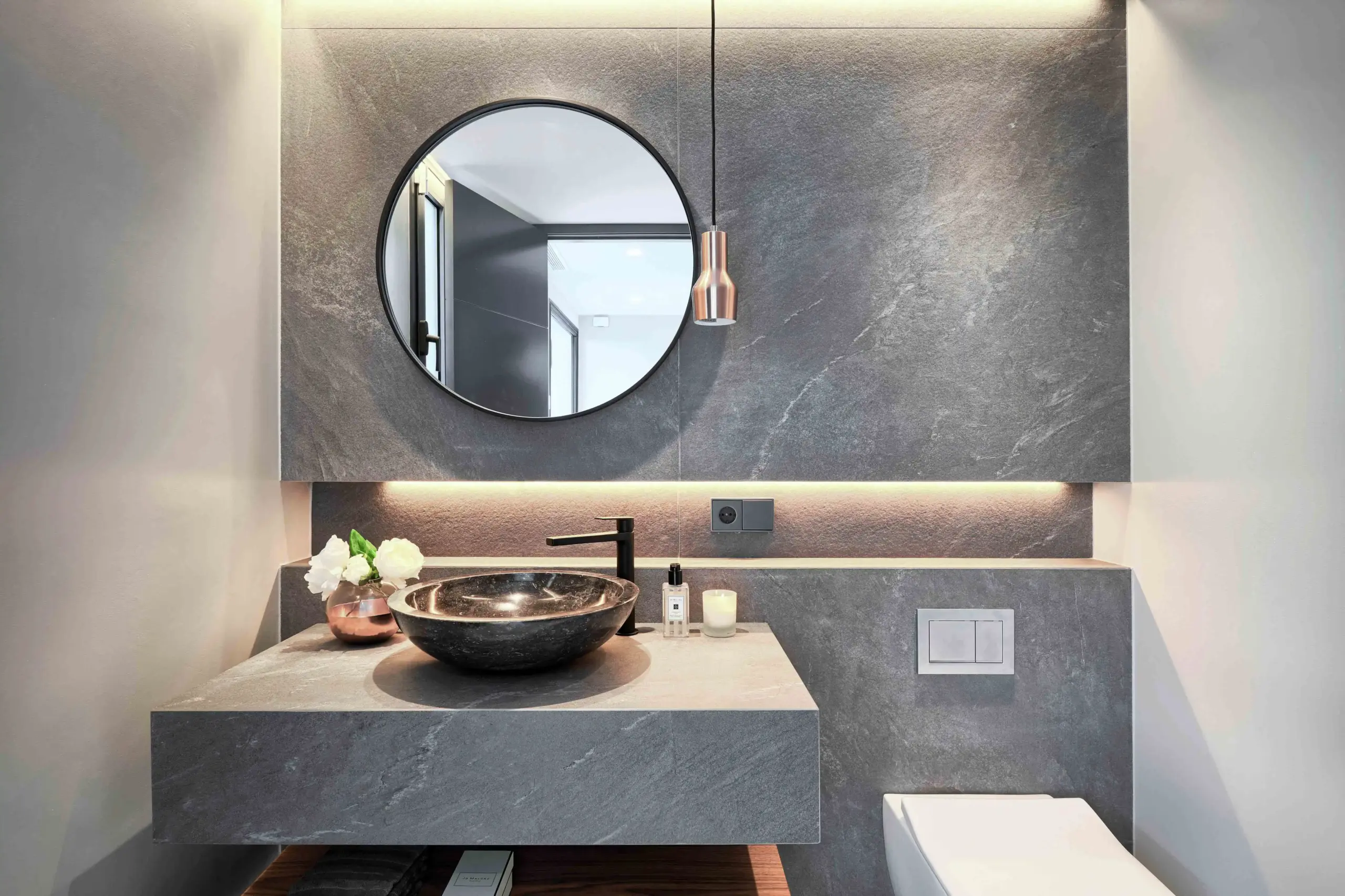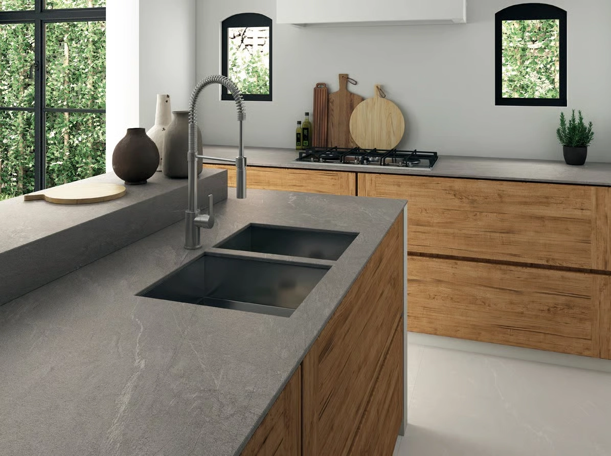 灰水岩是一款靈感來源於太平洋寬廣而平靜海面的石材,特別使用寧靜自然的灰色調與細膩的紋理,色澤柔和而深邃,灰水岩的美在於能夠反射出寧靜海洋的鎮靜效果,使其非常適合用於創造現代、簡約且具有放鬆氛圍的室內設計。