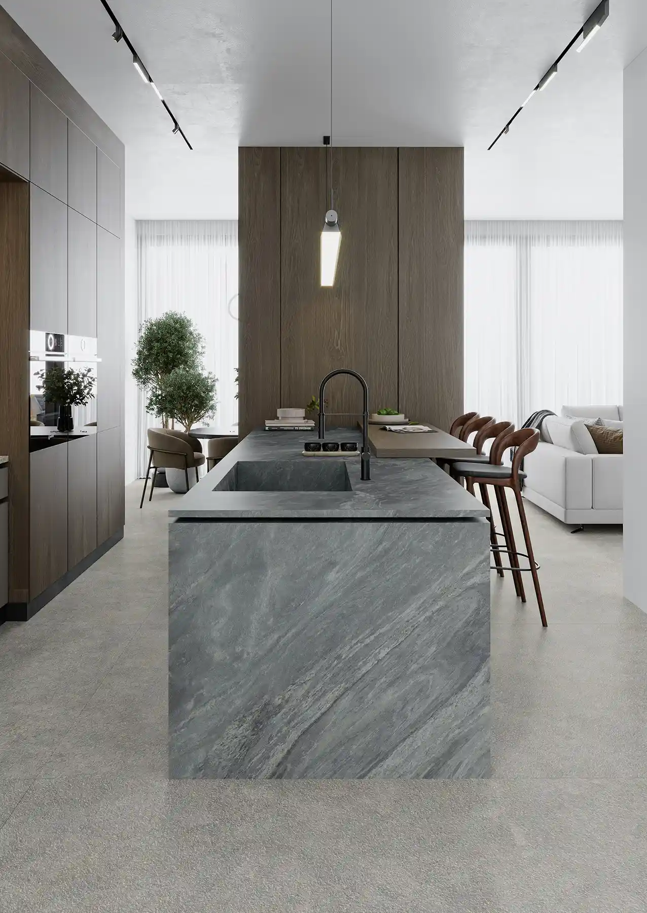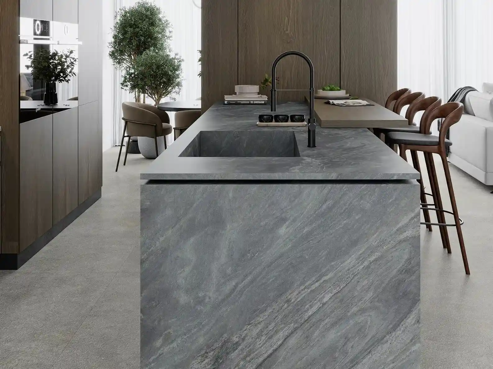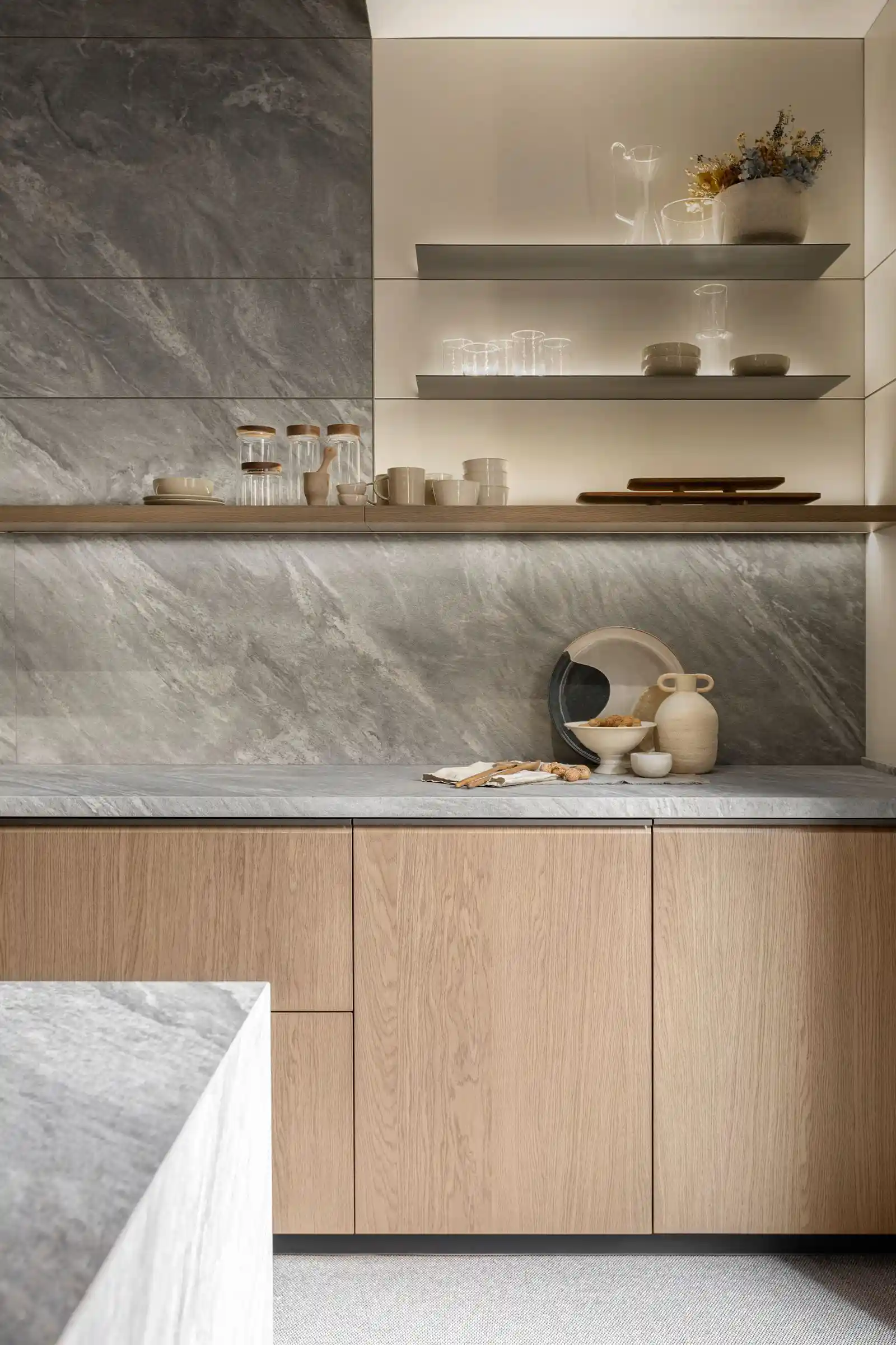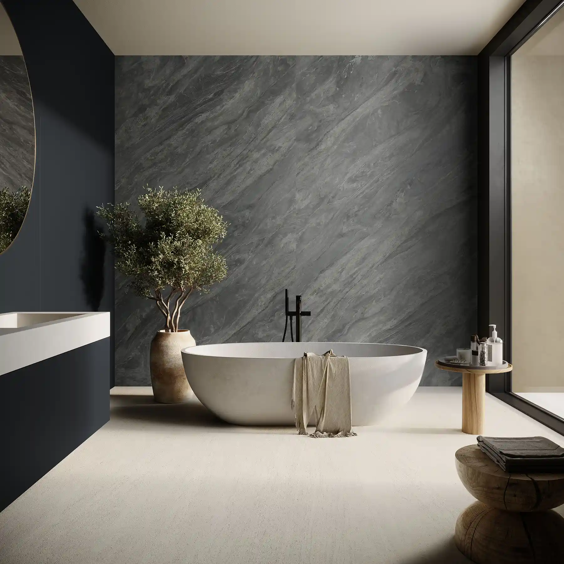 天琴座(Lyra)是星空中一座明亮的星座,象徵著高雅與和諧,也代表著音樂性的特質。Inalco透過觀察星座,為天琴岩加入灰色的優雅,並帶有柔和的紋理和微妙的藍色色澤變化,讓這保有特色花紋的板材,成為適用於營造優雅和寧靜的空間地特色大板。