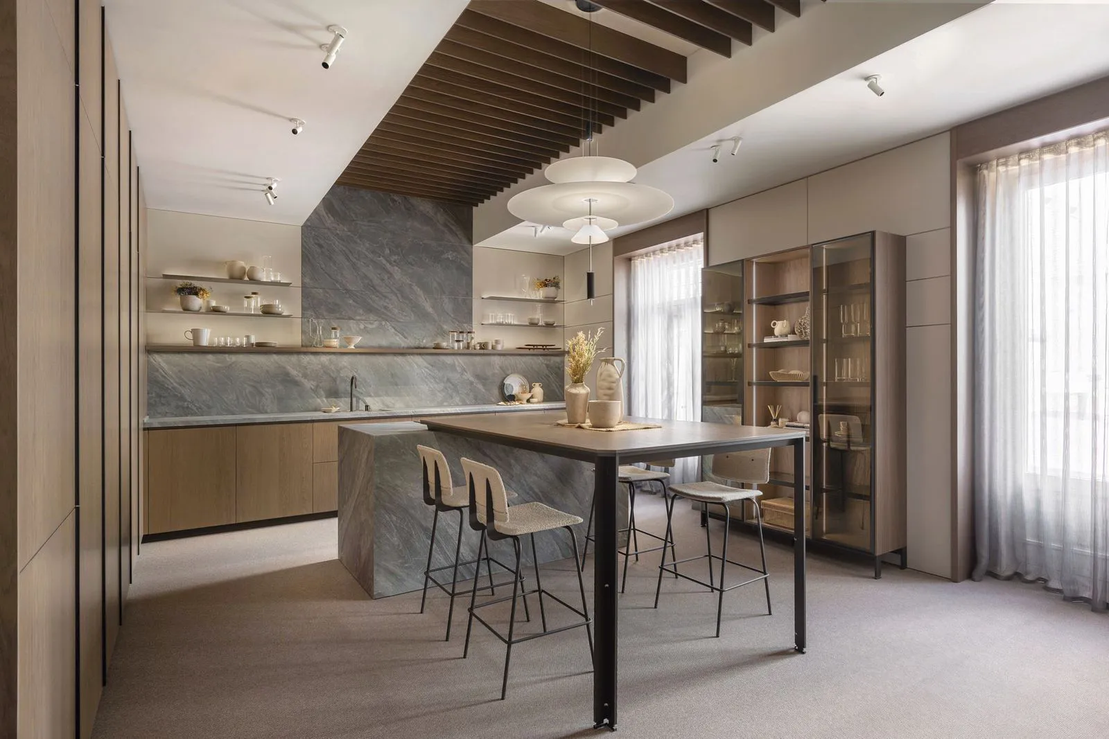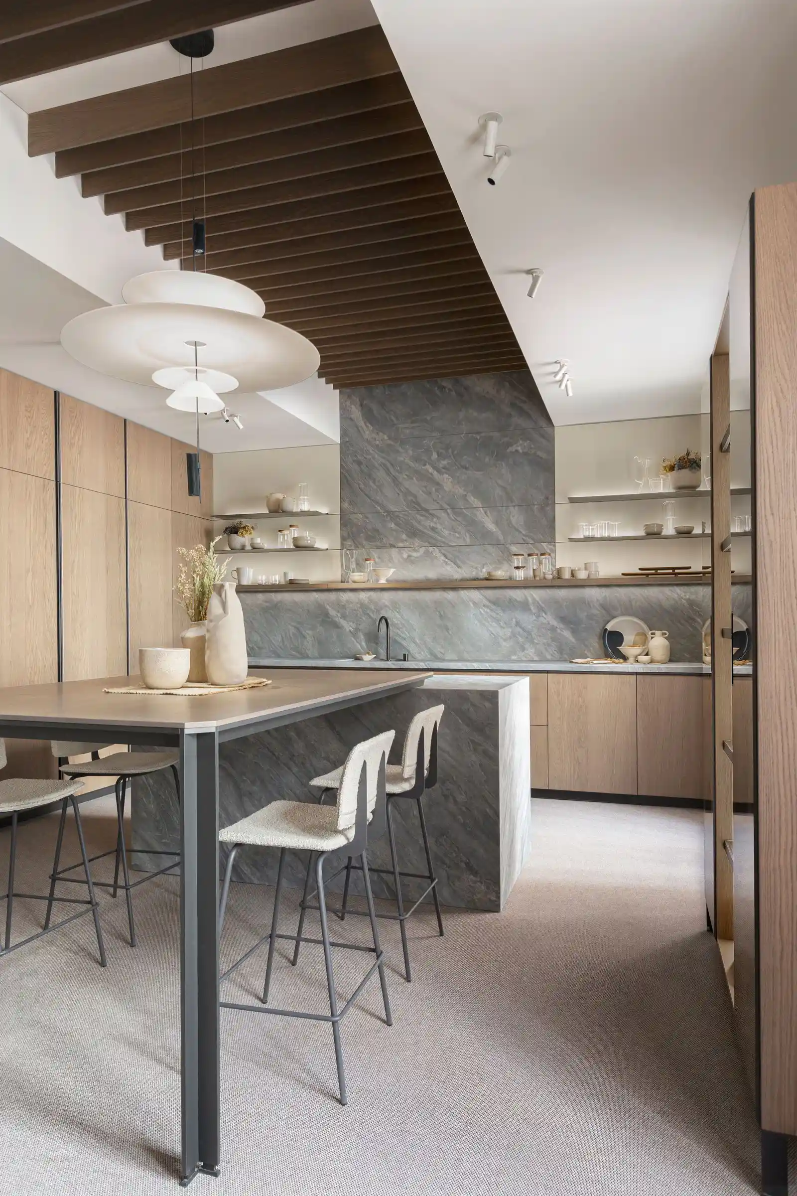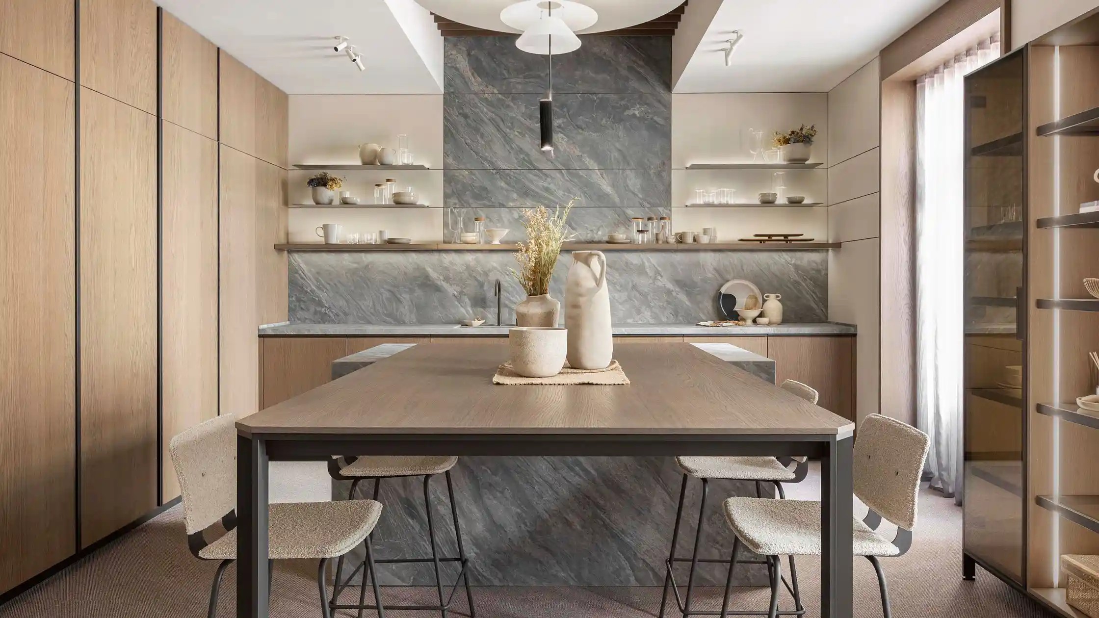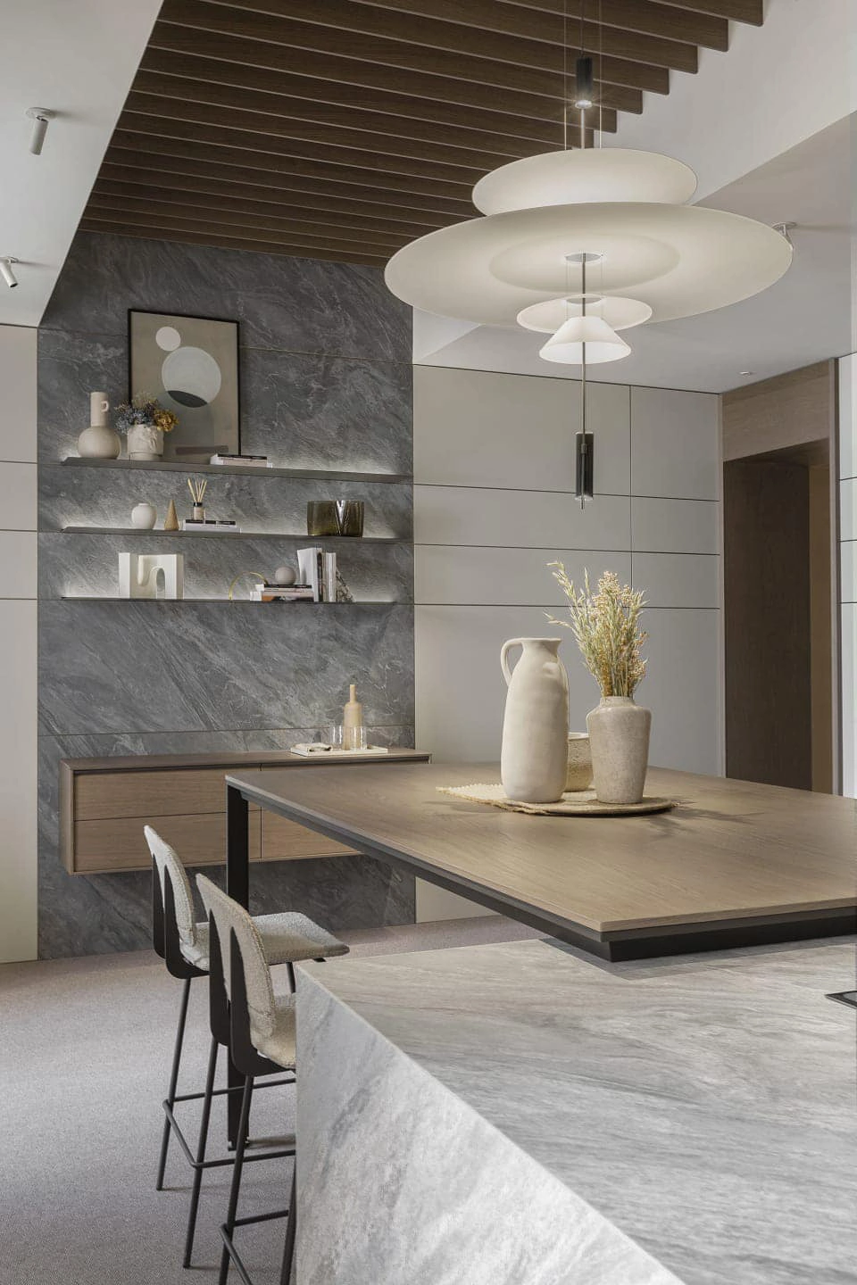 天琴座(Lyra)是星空中一座明亮的星座,象徵著高雅與和諧,也代表著音樂性的特質。Inalco透過觀察星座,為天琴岩加入灰色的優雅,並帶有柔和的紋理和微妙的藍色色澤變化,讓這保有特色花紋的板材,成為適用於營造優雅和寧靜的空間地特色大板。
