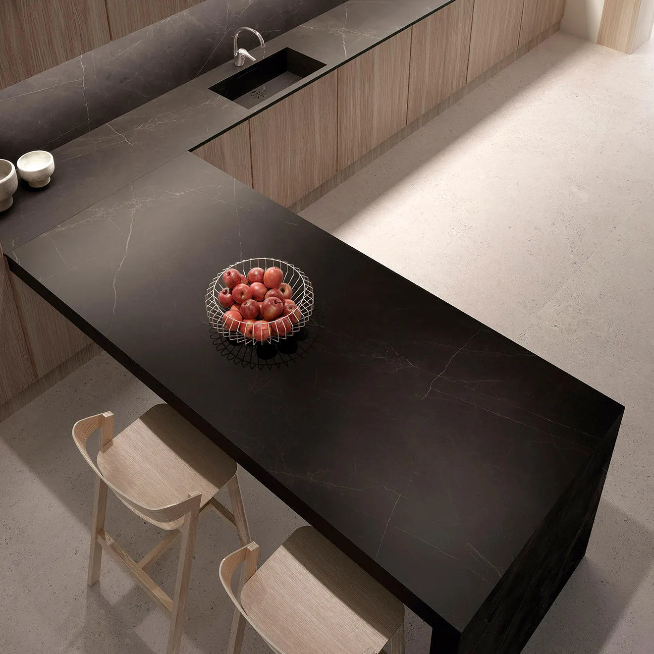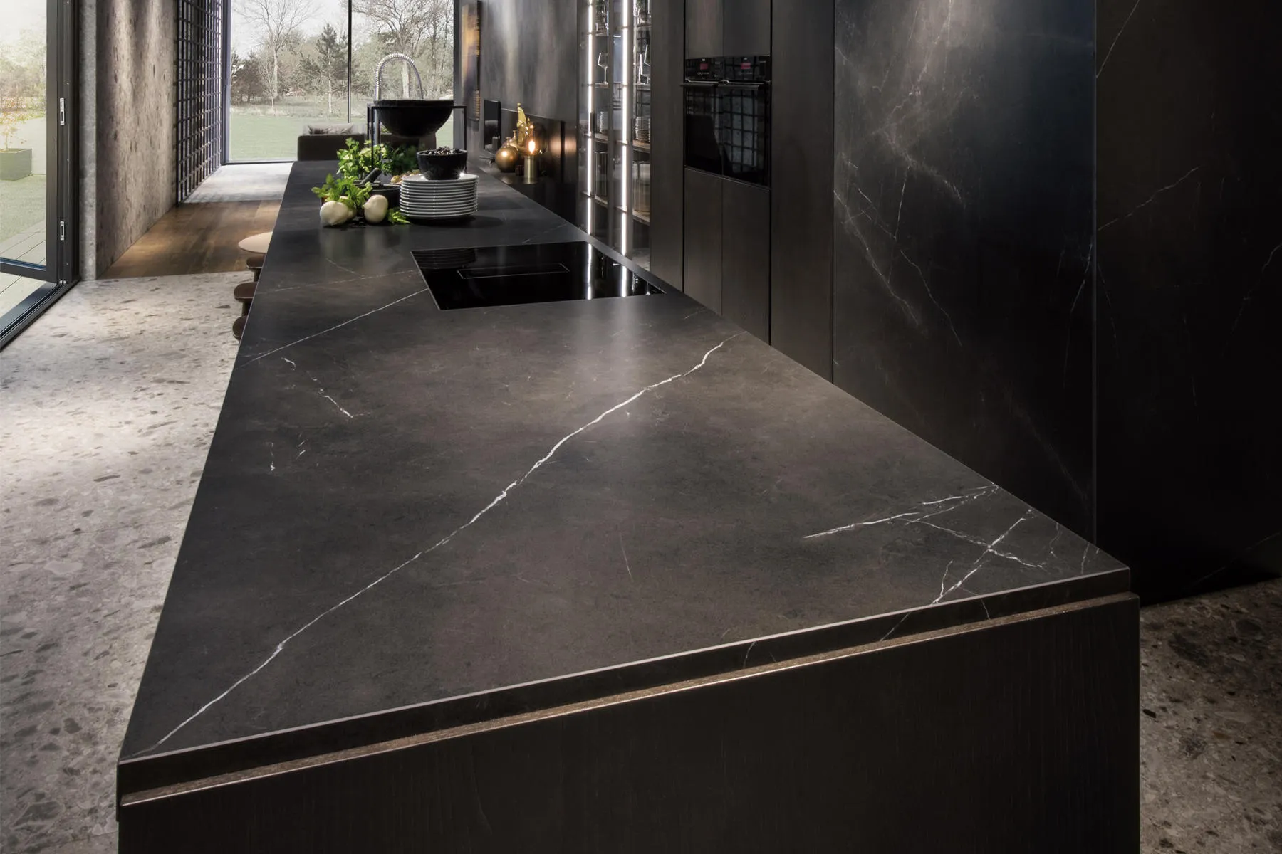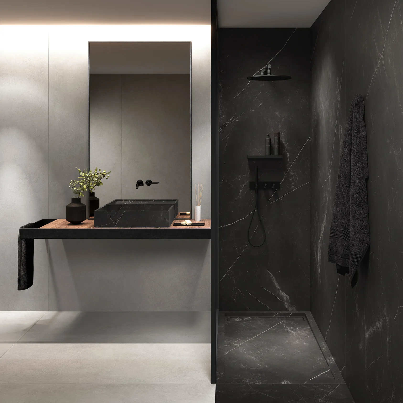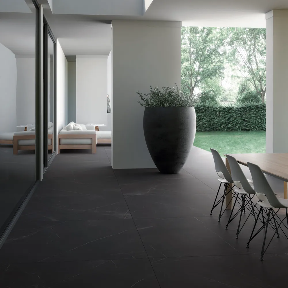 原文Storm Negro的雲紋黑,象徵如同暴風雨般的黑雲與力量,在風暴中的閃電花紋恣意的撒落其中,表現出深沉的色彩與動態感,將細節紋路創造視覺衝擊與表現,這種視覺深沉的花紋適用於現代與工業設計風格,與公共空間的地面或牆面作為視覺結合。 THICKNESS 丨 厚度 6mm (1/4") SIZE丨 尺寸 300cm x 100cm, 320cm x 160cm Grain Matching 丨 對紋 否 Surface | 表面 霧面